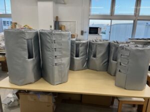 豊山インダストリー株式会社では、断熱カバーの製作にあたり、機械の採寸から製作・取付けまで一貫して自社で行なっているため、 不要なコストを抑え、さらに短納期でのご提供が可能です。 長年この業界で活躍しているベテランの縫製スタッフによるオーダーメイド製品は、 仕上がり・性能ともに高い評価をいただいております。