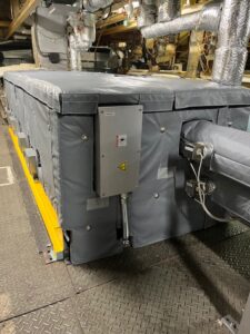 成形機の根元にあるフランジに断熱カバーを取付けました。 74台分すべて取付完了。 そも…
