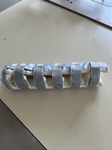 成形機の根元にあるフランジ用に断熱カバーを製作しました。合計74本です。 1台に付き1…